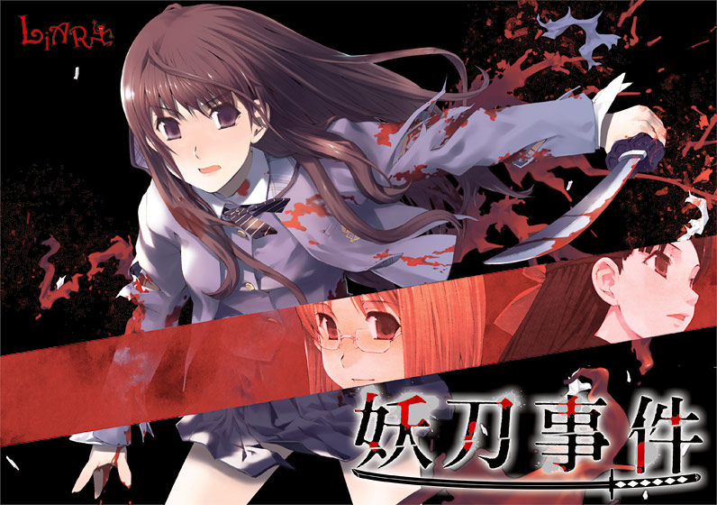 憑かれたように、死体に突き刺さる刀に触れる主人公。